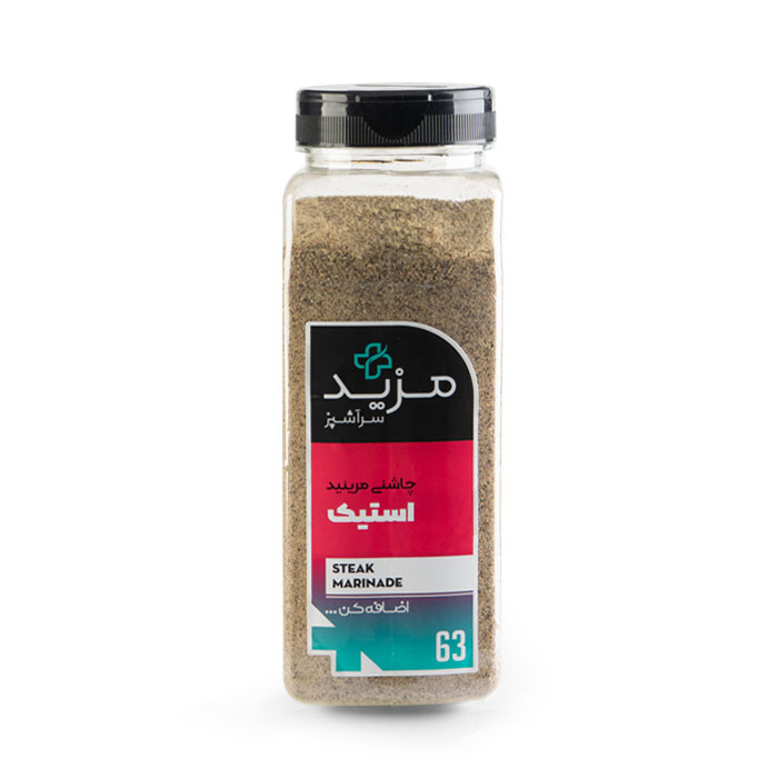 میکس مرینید استیک مزید استفاده شده و روش تهیه آن بهترین راز یک استیک لطیف و لذیذ است. از چاشنی مرینید استیک  برای نرم کردن و طعم‌ دارکردن گوشت استیک یا راسته برای پیتزا استیک استفاده می‌شود و بسیار معطر است.
