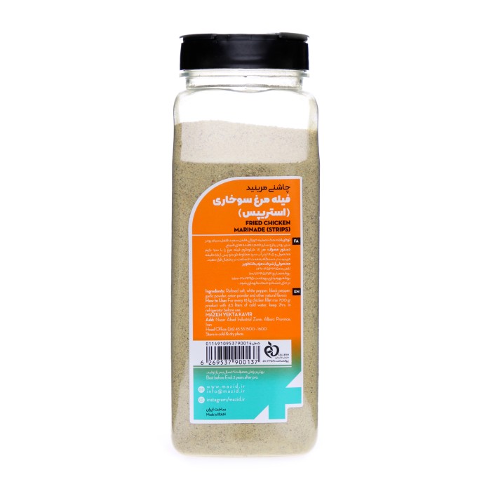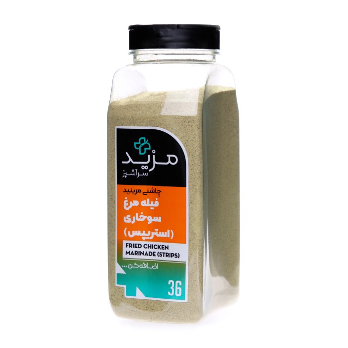 مرینید استریپس ۷۰۰ گرمی مزید از ترکیب نمک تصفیه خوراکی، فلفل سفید، فلفل سیاه، پودر سیر، پودر پیاز و سایر طعم دهنده‌های خاص تشکیل شده است.