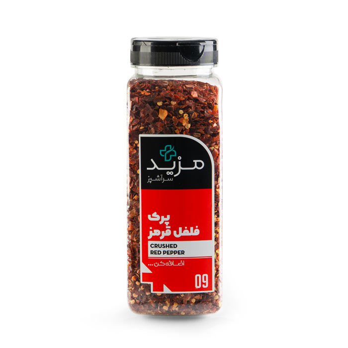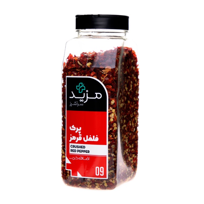 پرک فلفل قرمز مزید از پرک کردن بهترین فلفل های قرمز دستچین تولید شده و طعم میوه ای با تندی خاص را به غذا میدهد. کاربرد آن گسترده بوده و ترکیب خوبی با پیتزا، پاستا، خورش، سوپ و تاکو دارد.