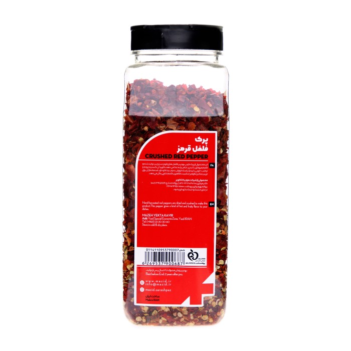 پرک فلفل قرمز مزید ۳۵۰ گرمی بسته بندی شدهاند، که نگهداری و مصرف مداوم آن را ساده میکند. برای حفظ کیفیت و ماندگاری طولانی مدت پرک فلفل قرمز مزید آن را درمحیط خشک و دمای ۸ تا ۲۴ درجه نگهداری کنید.