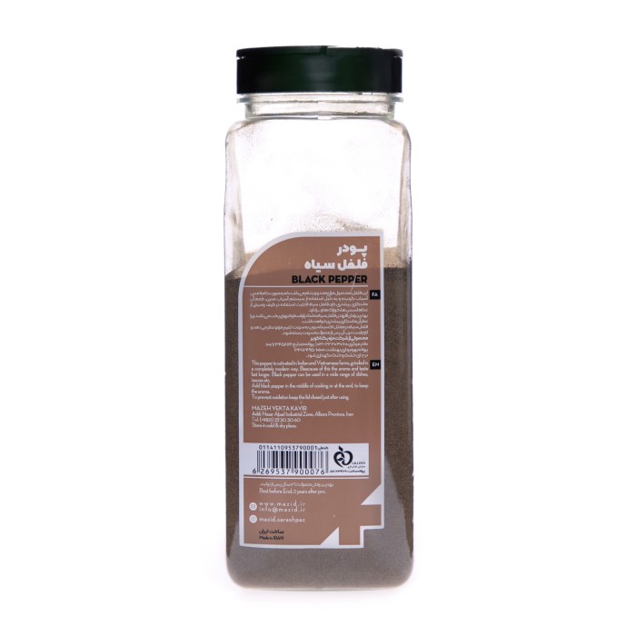 Mazid’s 450 g black pepper powder has a strong aroma and a warm nature. The price of this large black pepper powder in Mazid’s store is very reasonable, and the product is offered with high quality. The compound responsible for its warmth and spiciness is Piperine, which also contributes to the distinctive aroma and flavor of premium black pepper. Piperine in black pepper promotes the activity of various amino acids in the body and enhances mineral absorption at different stages.